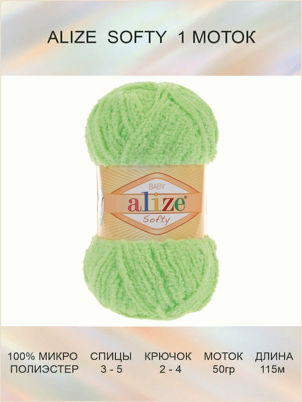 Пряжа ALIZE SOFTY, зеленый - 485, 100% микрополиэстер, 5 мотков, 50 г, 115 м.