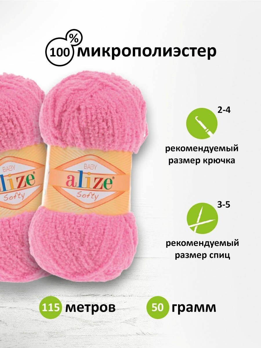 Пряжа Alize Softy (Ализе Софти) - 3 мотка Цвет: 185, Розовый 100% микрополиэстер 50 г / 115 м