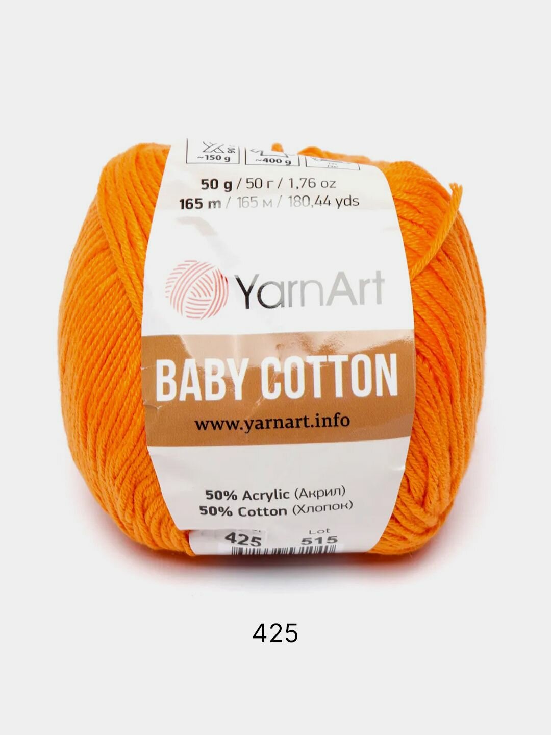 Купить Пряжа YarnArt Baby cotton оранжевый (421), 50%хлопок/50%акрил, 165м, 50г, 1шт