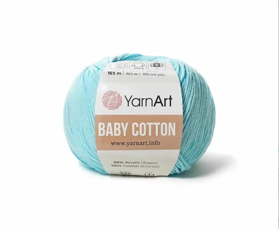 Купить Пряжа YarnArt Baby cotton светлая бирюза (446), 50%хлопок/50%акрил, 165м, 50г, 1шт