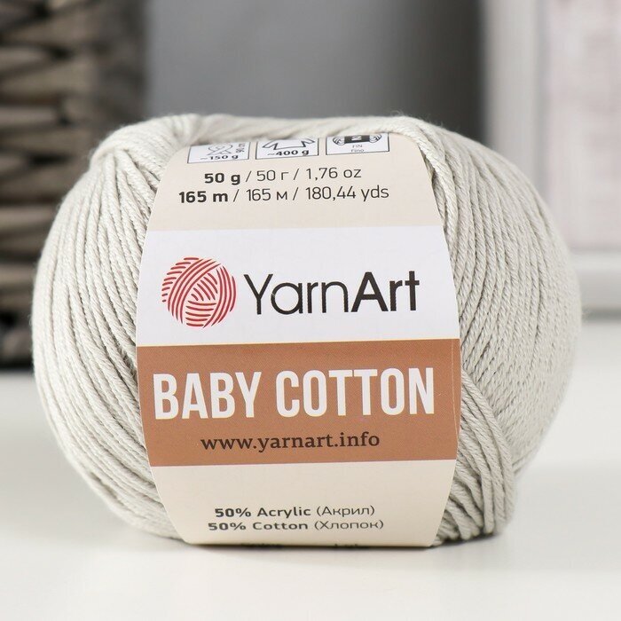 Купить Пряжа YarnArt Baby cotton светло-серый (451), 50%хлопок/50%акрил, 165м, 50г, 1шт