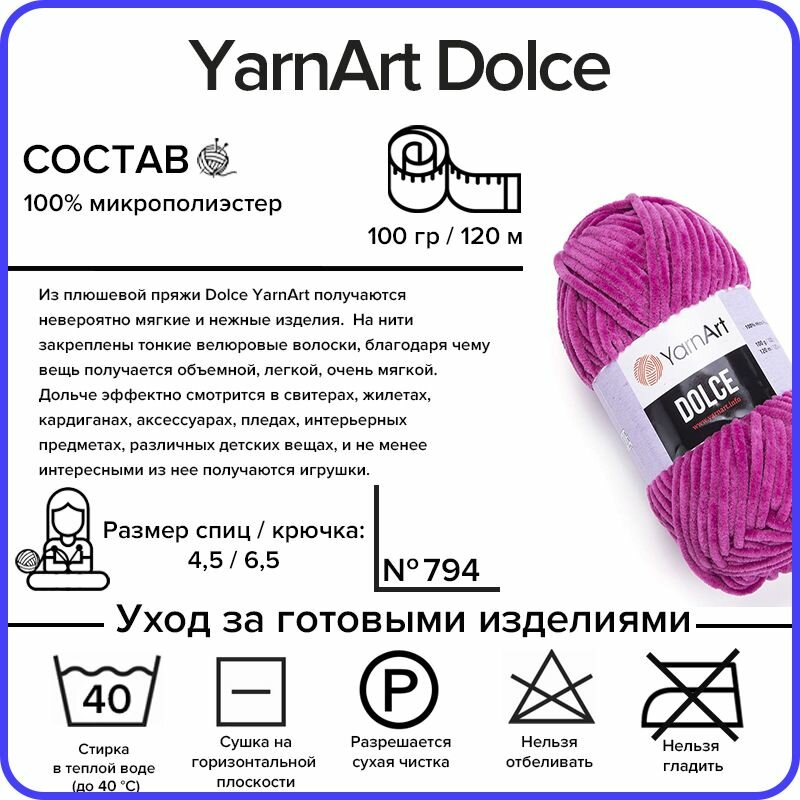 Купить Пряжа YarnArt Dolce цикламен (794), 100%микрополиэстер, 120м, 100г, 5шт