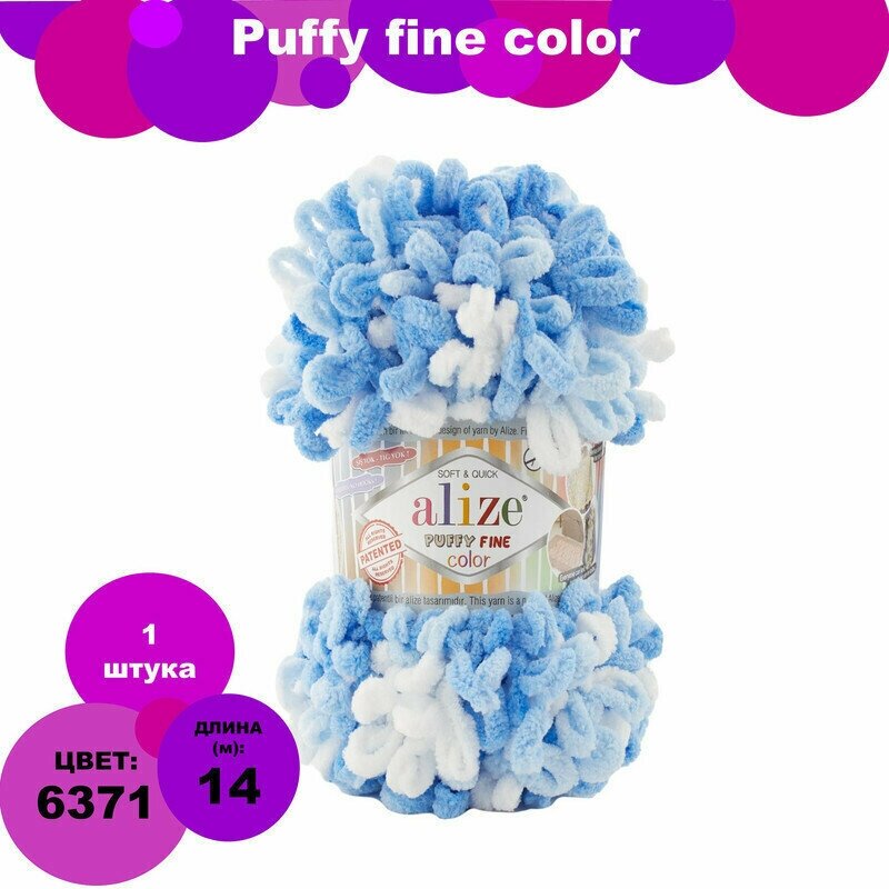 Купить Пряжа Alize Puffy fine color белый-голубой-синий (6371), 100%микрополиэстер, 14.5м, 100г, 1шт