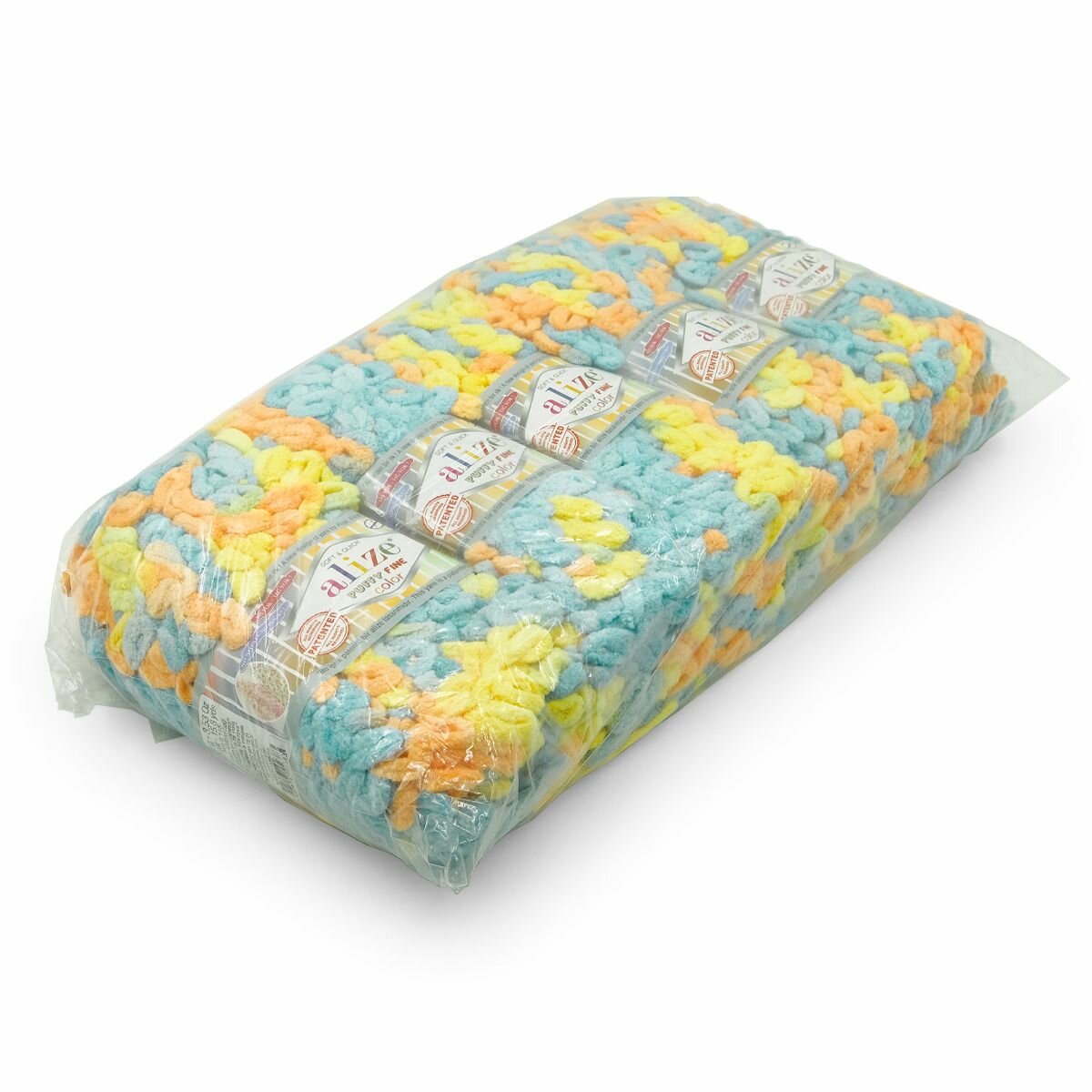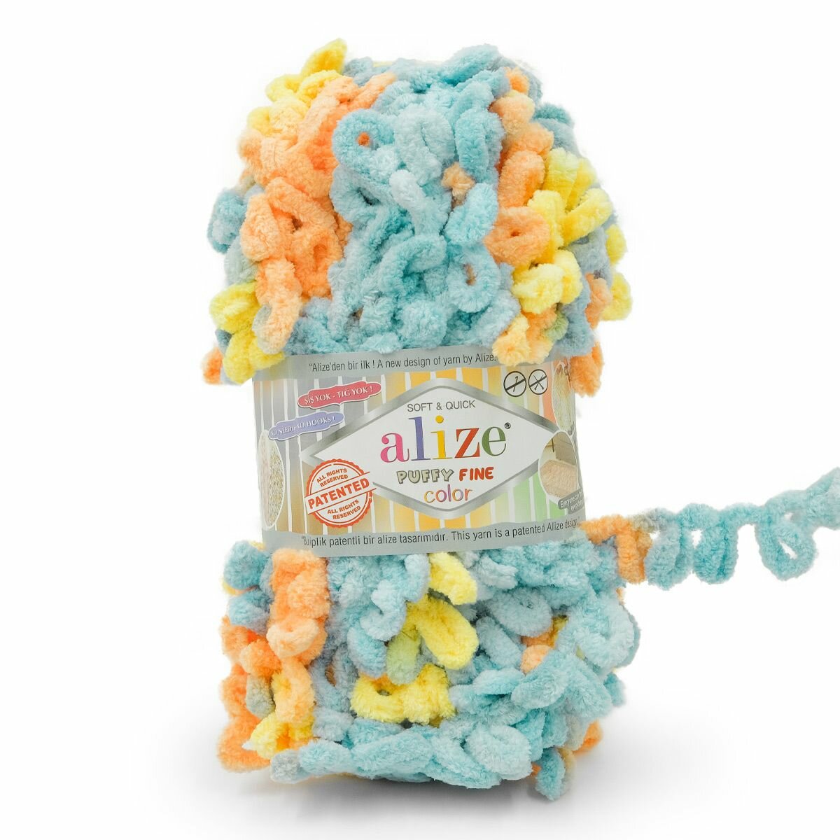 Пряжа Alize Puffy Fine Color (Пуффи Файн Колор) - 1 моток цвет: 5949 Желтый / бирюзовый / розовый / белый / голубой 100% микрополиэстер 100г 14м