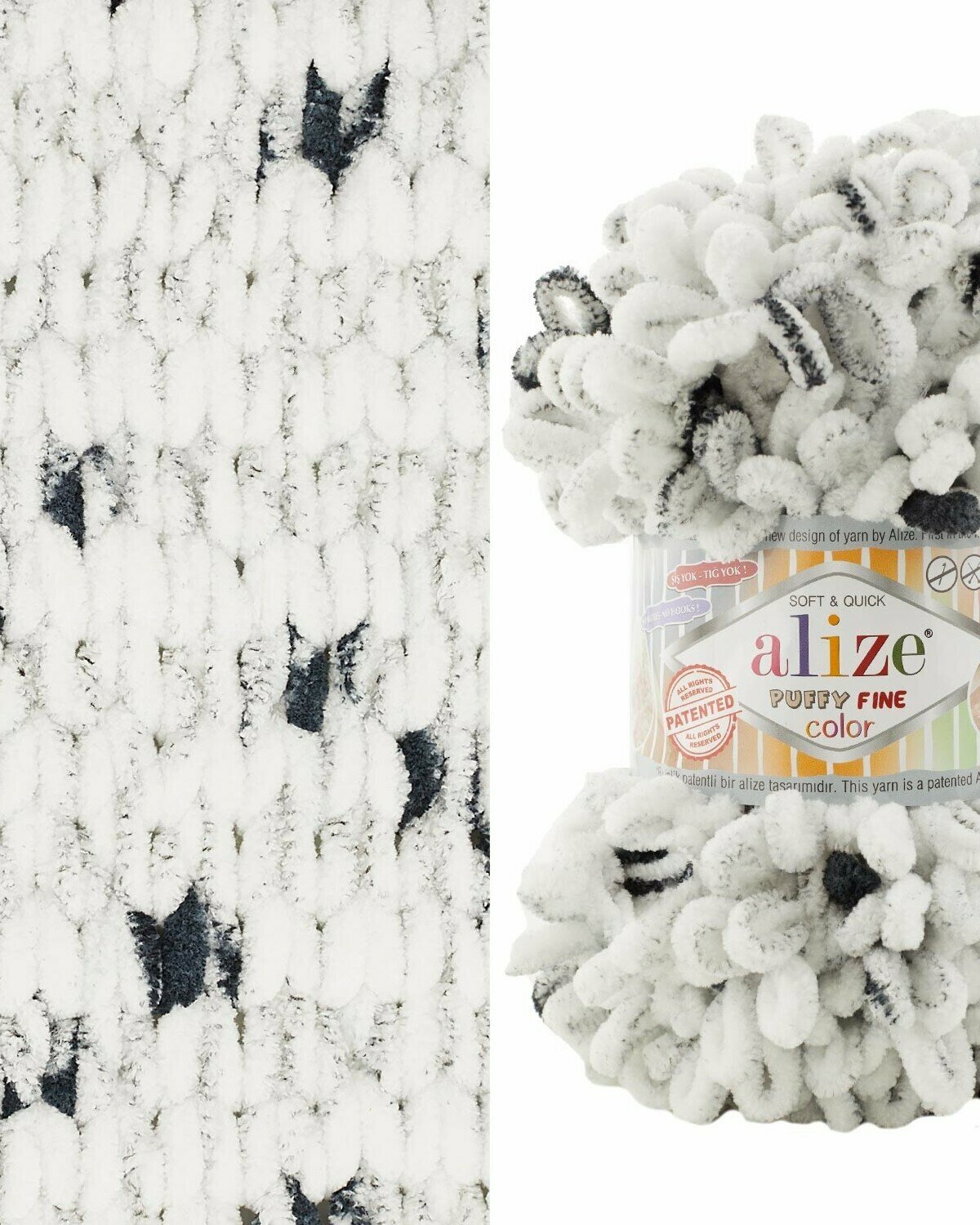Пряжа Alize Puffy fine color белый-черный (7646), 100%микрополиэстер, 14.5м, 100г, 5шт