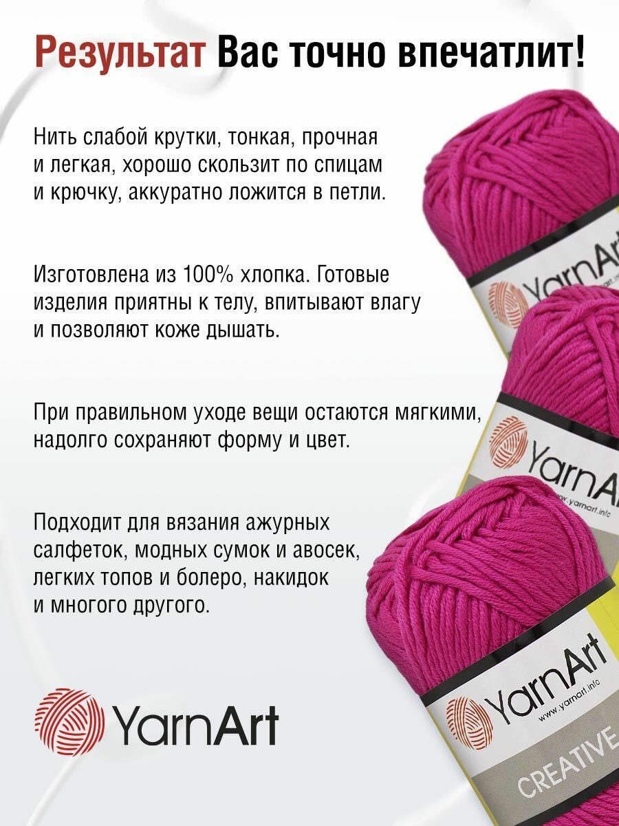 Пряжа YarnArt Creative 50г, 85м (ЯрнАрт Креатив) Нитки для вязания, 100% хлопок, цвет 243 малиновый, 1шт