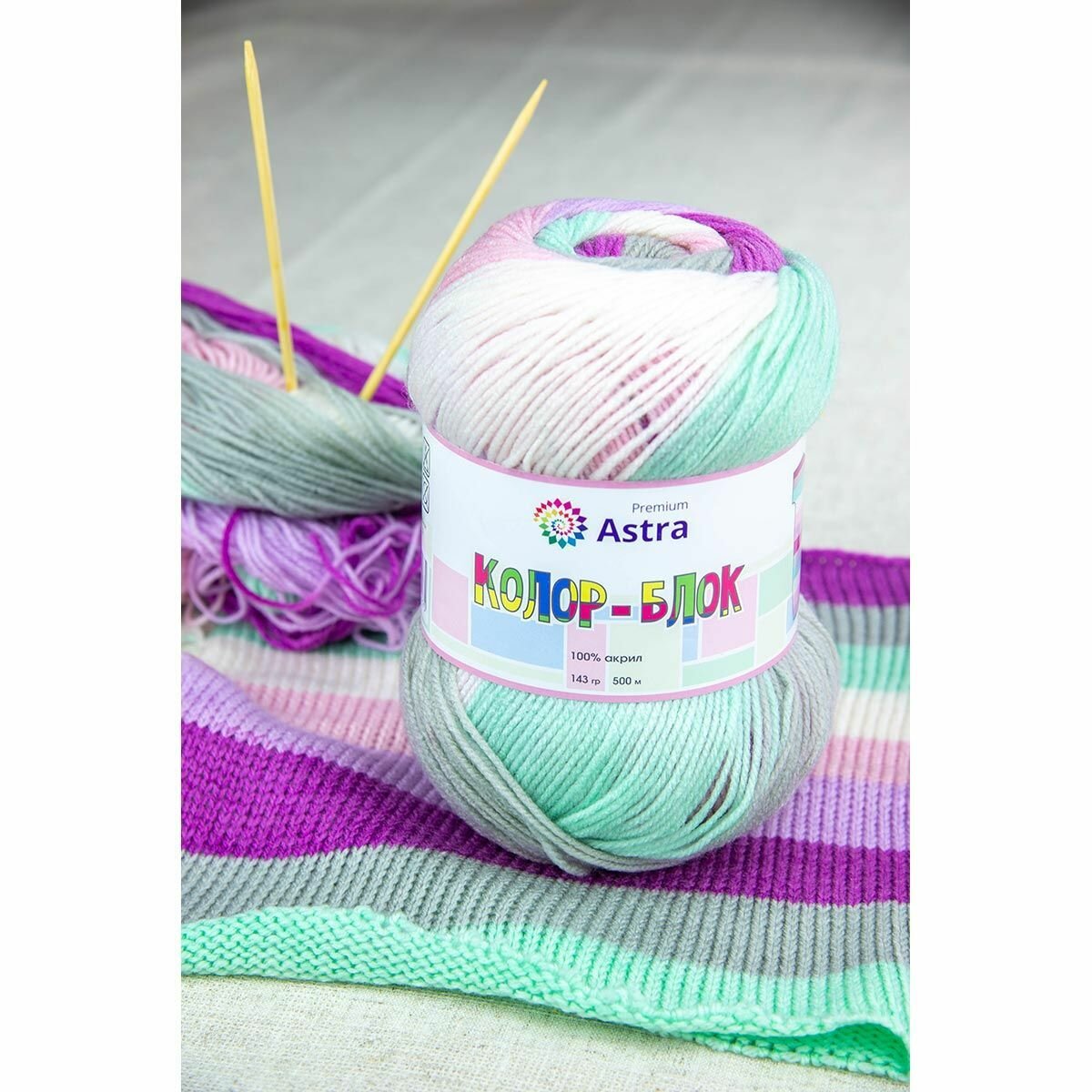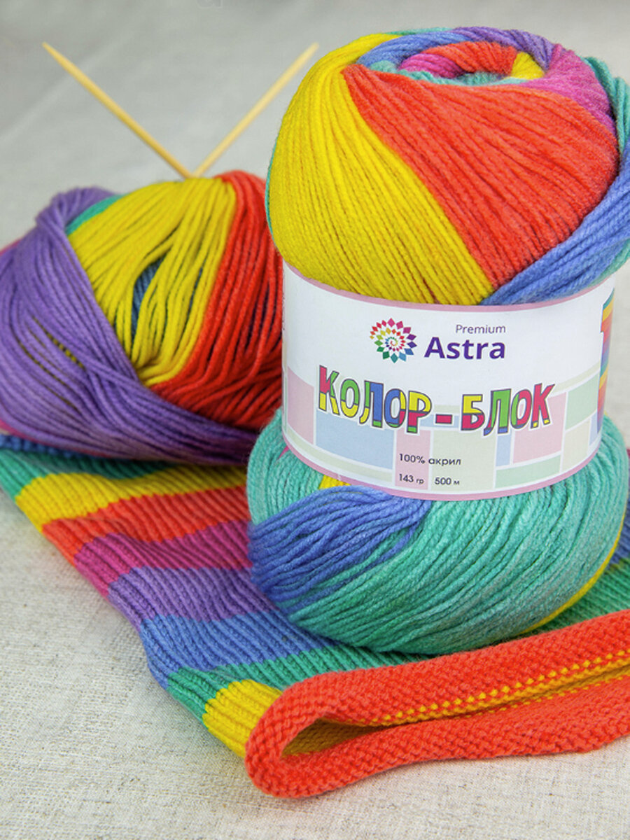 Пряжа для вязания Astra Premium 'Колор-блок' (Color-block) 143 г, 500 м (100% акрил) (03 длинно-секционный), 2 мотка