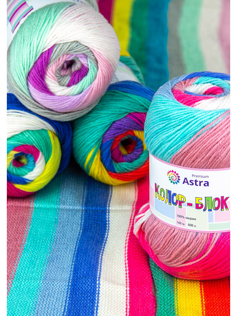 Пряжа Astra Premium "Колор блок", 143 гр 500 м, 100% акрил, 03 длинно секционный, 2 шт