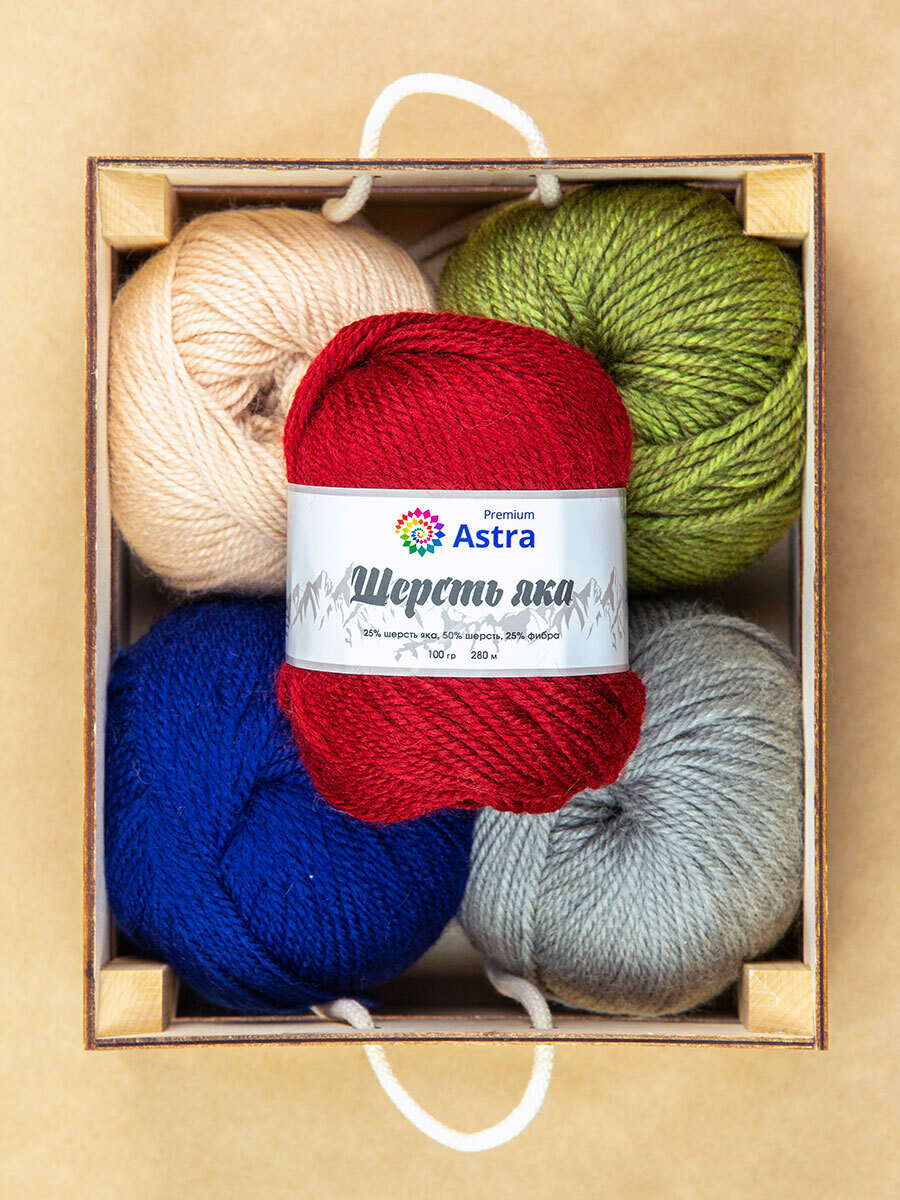 Пряжа Astra Premium "Шерсть яка", 100 гр 120 м, 25% шерсть яка, 50% шерсть, 25% фибра, 25 темно-красный, 2 шт
