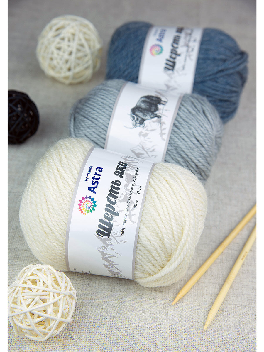 СохранитьПряжа для вязания Astra Premium 'Шерсть яка' (Yak wool) 100гр 120м (+/-5%) (25% шерсть яка, 50% шерсть, 25% фибра) (15 светлый джинс), 2 мотка интересное: