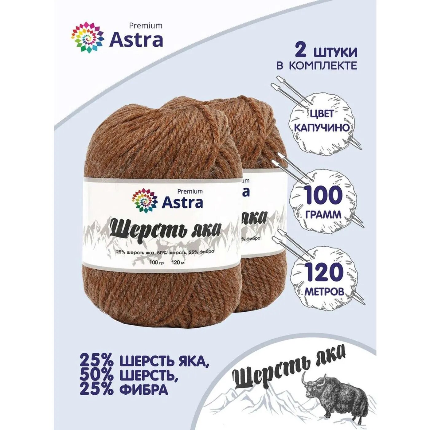 Купить Пряжа для вязания Astra Premium 'Шерсть яка' (Yak wool) 100гр 120м (+/-5%) (25% шерсть яка, 50% шерсть, 25% фибра) (08 капучино), 2 мотка