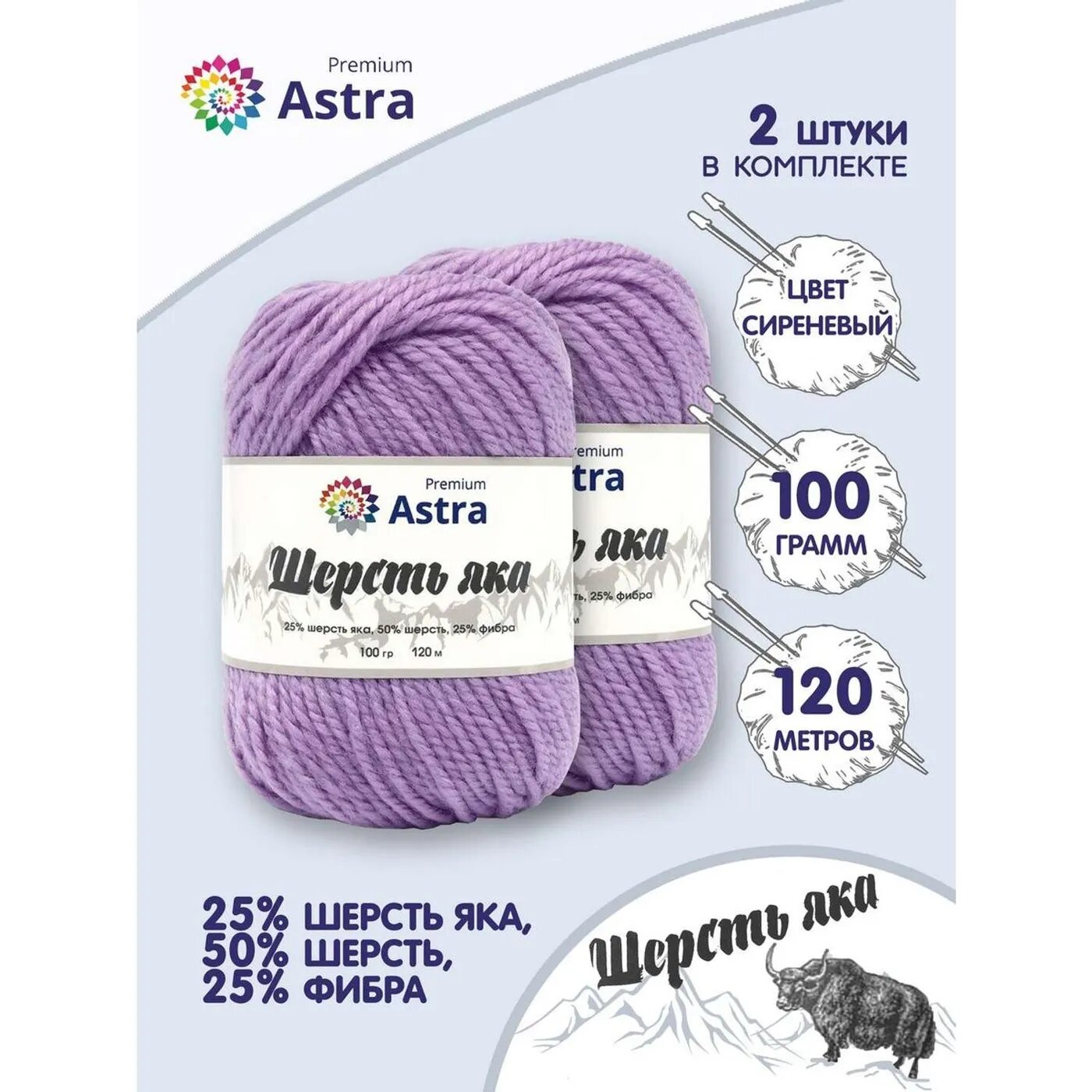 Пряжа Astra Premium "Шерсть яка", 100 гр 120 м, 25% шерсть яка, 50% шерсть, 25% фибра, 05 сиреневый, 2 шт