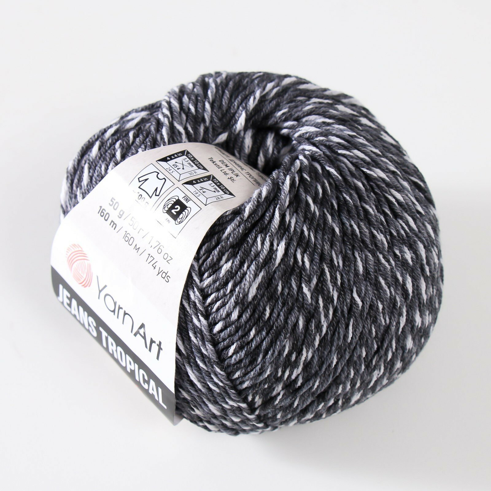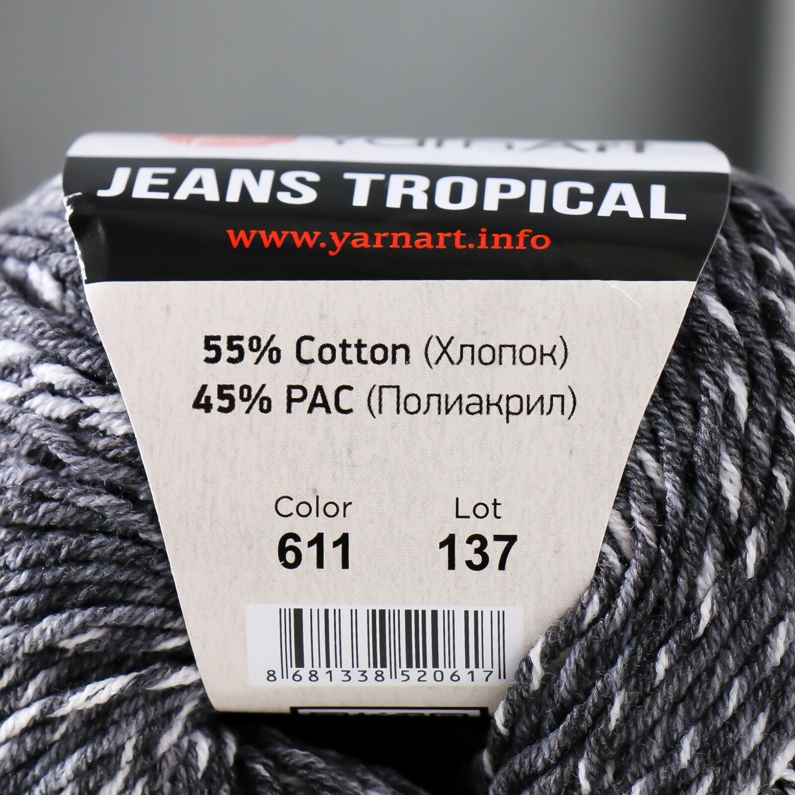 Купить Пряжа YarnArt Jeans tropikal черно-белый (611), 55%хлопок/45%акрил, 160м, 50г, 1шт