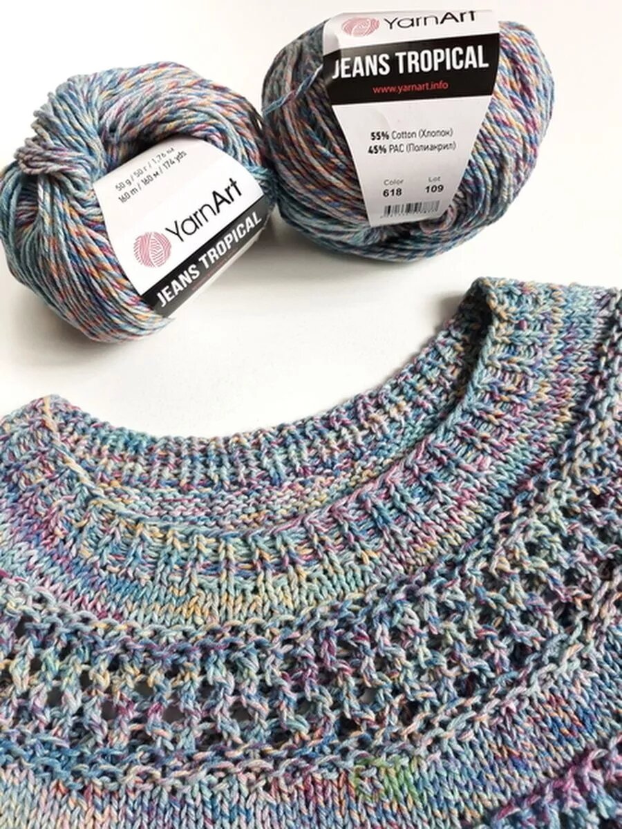 СохранитьПряжа YarnArt Jeans tropikal сиреневый меланж (622), 55%хлопок/45%акрил, 160м, 50г, 2шт интересное: