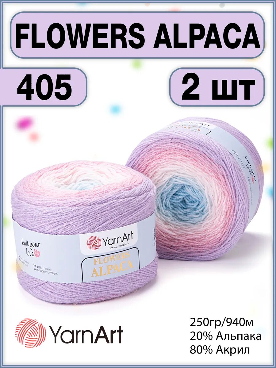 Купить Пряжа для вязания YarnArt 'Flowers Alpaca' 250гр 940м (20% альпака, 80% акрил) (405), 2 мотка