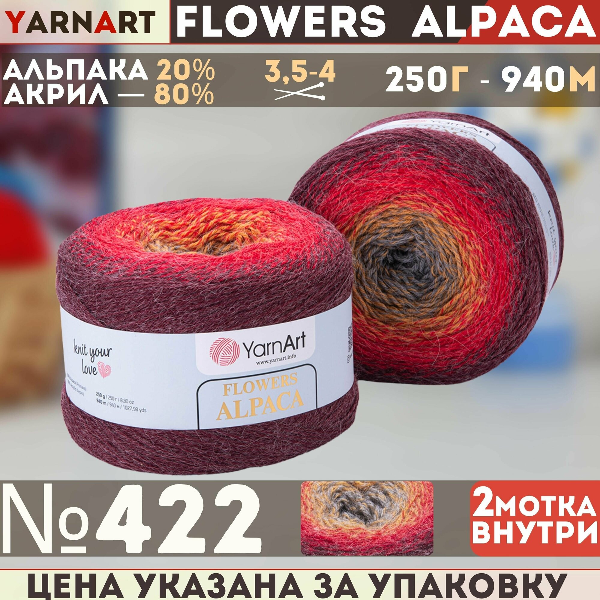 Купить Пряжа Yarnart Flowers alpaca бордовый-красный-желтый-серый (422), 20%альпака/80%акрил, 940м, 250г, 1шт
