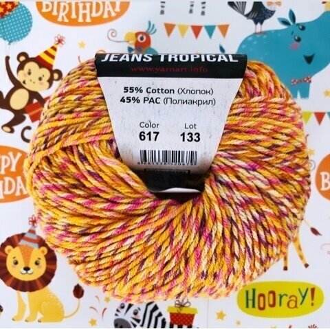 СохранитьПряжа YarnArt Jeans tropikal оранжевый меланж (617), 55%хлопок/45%акрил, 160м, 50г, 1шт интересное: