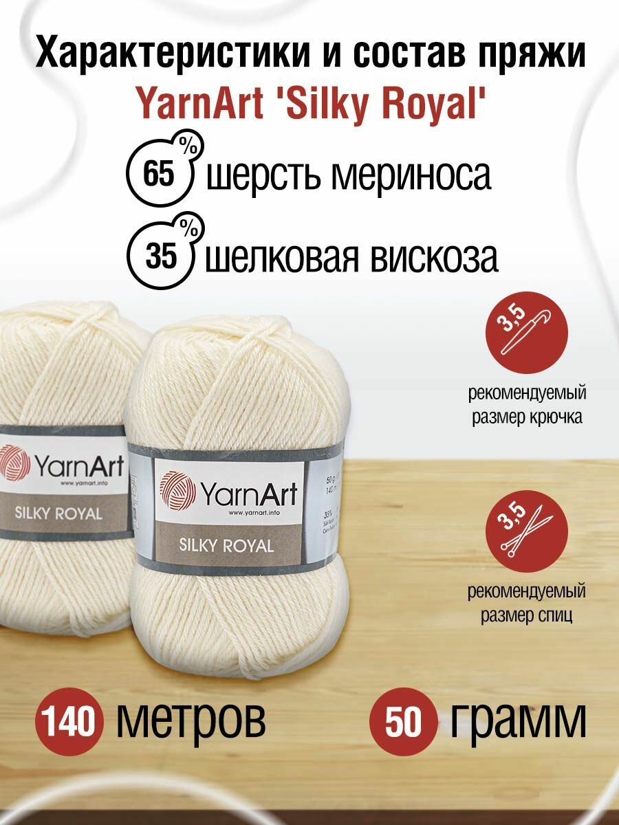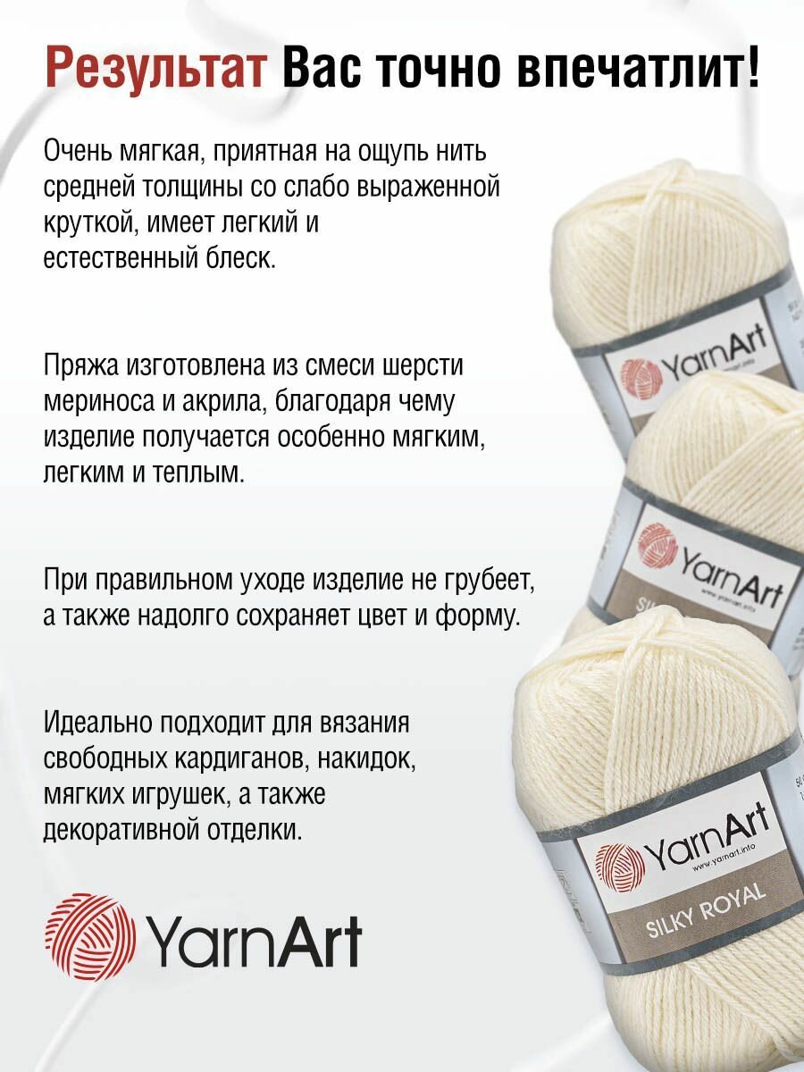 СохранитьПряжа для вязания YarnArt 'Silky Royal' 50гр 140м (35% шелковая вискоза, 65% шерсть мериноса) (430 молочный), 5 мотков интересное: