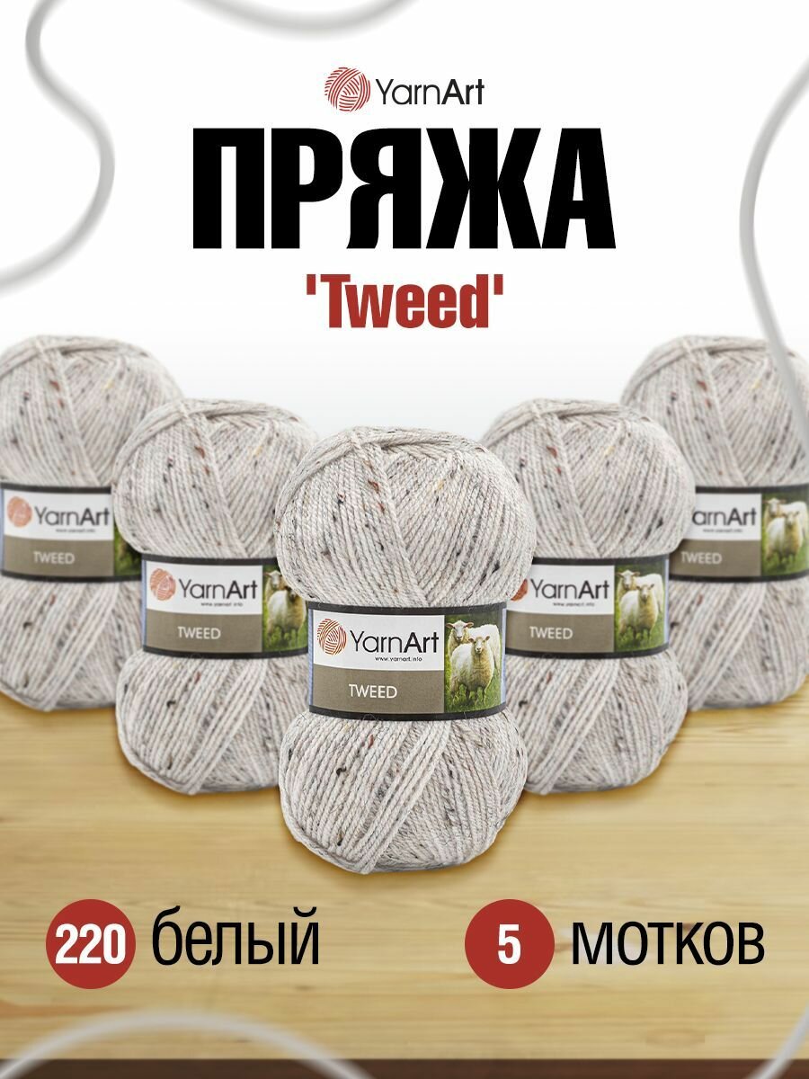 Купить Пряжа для вязания YarnArt 'Tweed', 100г, 280м (30% шерсть, 60% акрил, 10% вискоза) (220 белый), 5 мотков