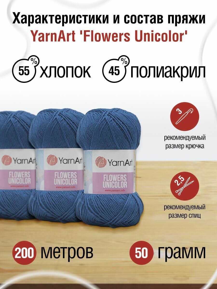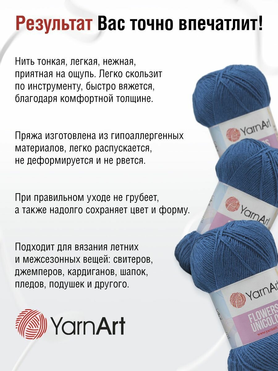 СохранитьПряжа YarnArt Flowers Unicolor тонкая 50 г 200 м 756 джинсовый 5 мотков интересное: