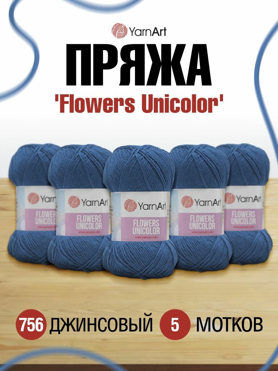 Купить Пряжа YarnArt Flowers Unicolor тонкая 50 г 200 м 756 джинсовый 5 мотков