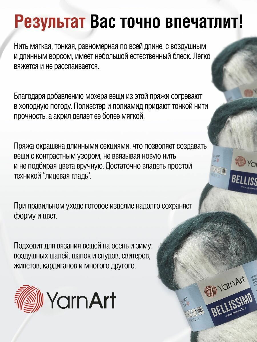 Купить Пряжа для вязания YarnArt 'Bellissimo', 150г, 330м (13% мохер, 67% акрил, 4% полиамид, 16% полиэстер) (1401), 3 мотка