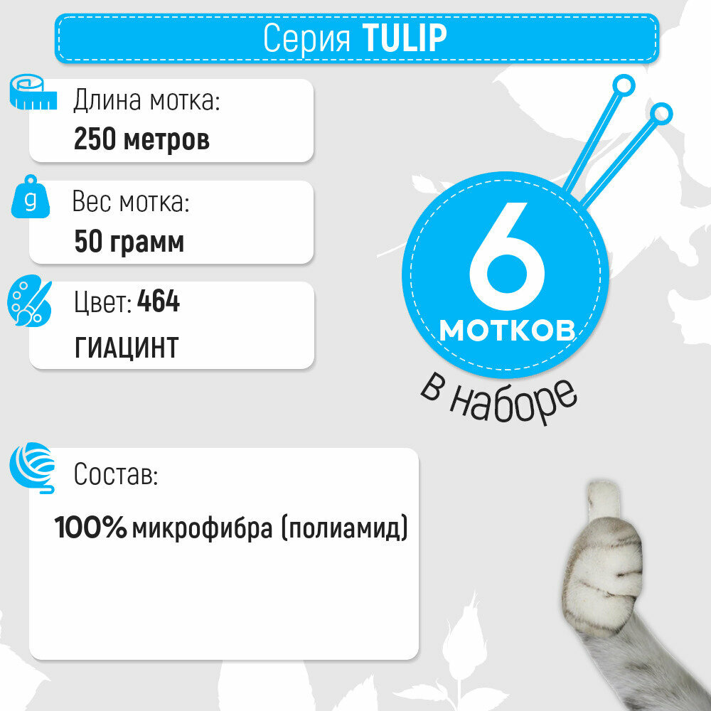 Пряжа для вязания YarnArt 'Tulip' 50г, 250м (100% микрофибра) (464 синий), 6 мотков