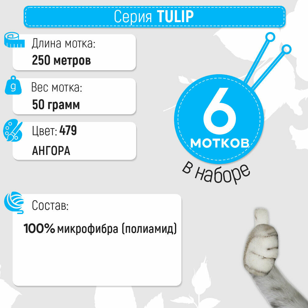 Пряжа TULIP (YarnArt), св. сер-сер - 479, 100% микрофибра, 6 мотков, 50 г, 250 м.