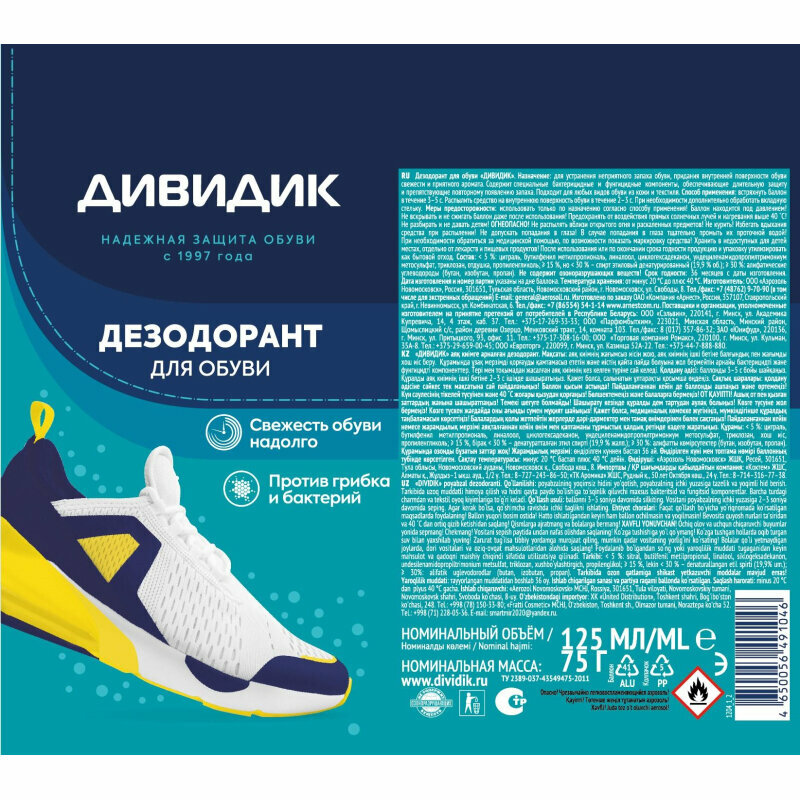 Дивидик Аэрозоль дезодорант для обуви 125мл (2 шт)