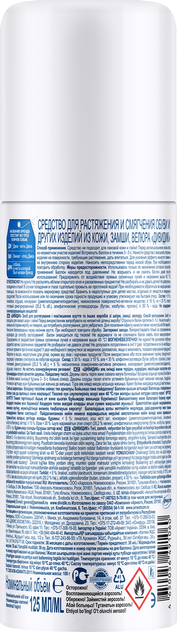 Дивидик Растяжитель для обуви аэрозоль для обуви из кожи, замши,велюра, нубука 125мл