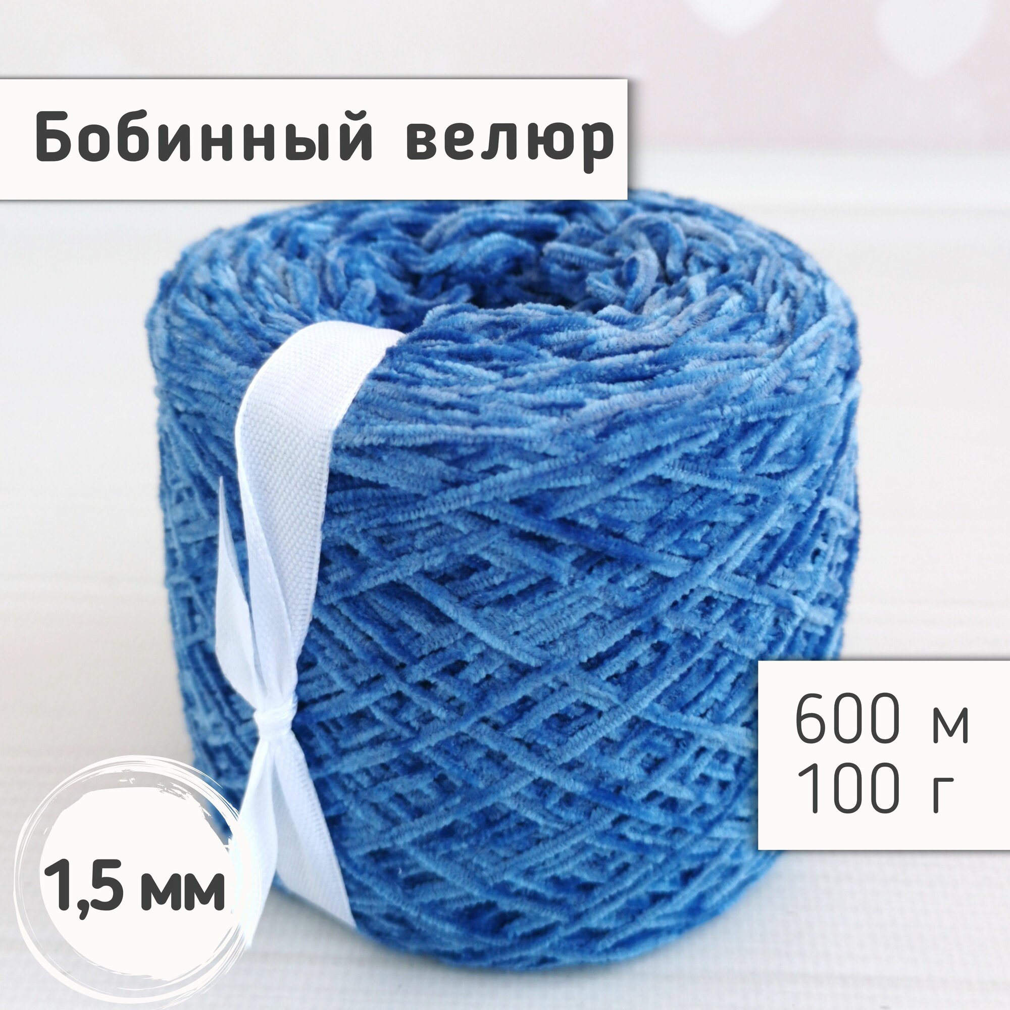 Велюр бобинный 1,5мм / Тонкая велюровая пряжа для вязания игрушек и одежды / Микровелюр, 600м/100гр, Василек