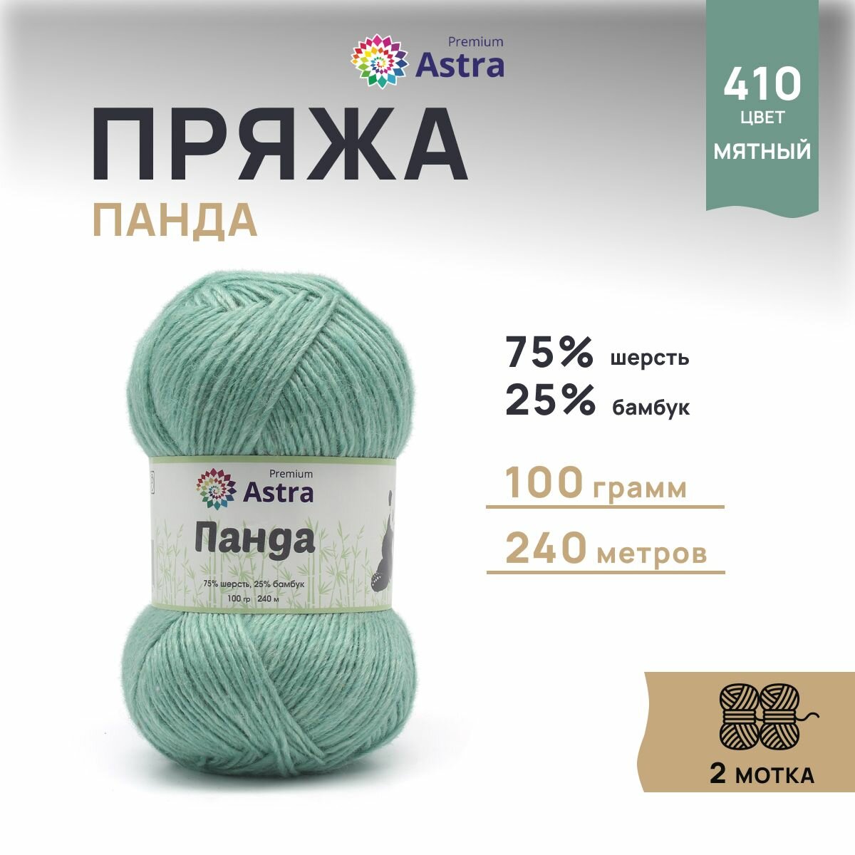Купить Пряжа для вязания Astra Premium 'Панда' (Panda), 100 г, 240 м (75% шерсть, 25% бамбук) (410 мятный), 2 мотка