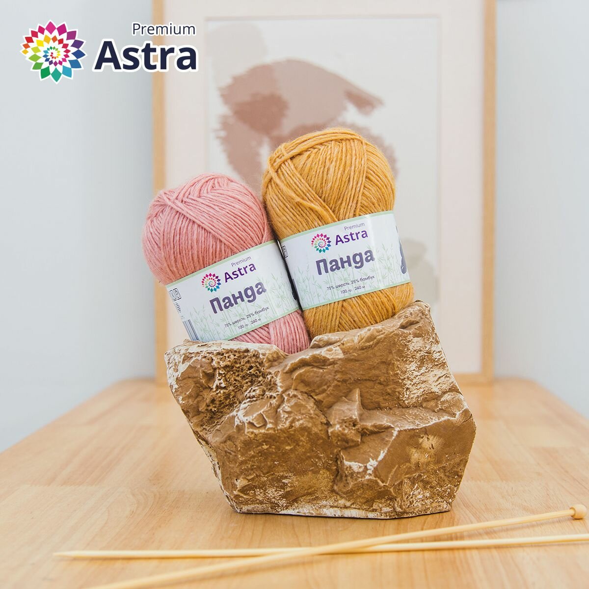 Пряжа для вязания Astra Premium 'Панда' 100г, 240м (75% шерсть, 25% бамбук) (295 охра), 2 мотка