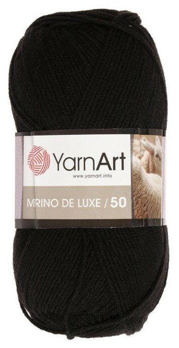 Пряжа YarnArt Merino de Luxe 50 (Ярнарт Мерино де Люкс) 100г, 280м, 50% шерсть 50% акрил, цвет 585 черный, 1 шт