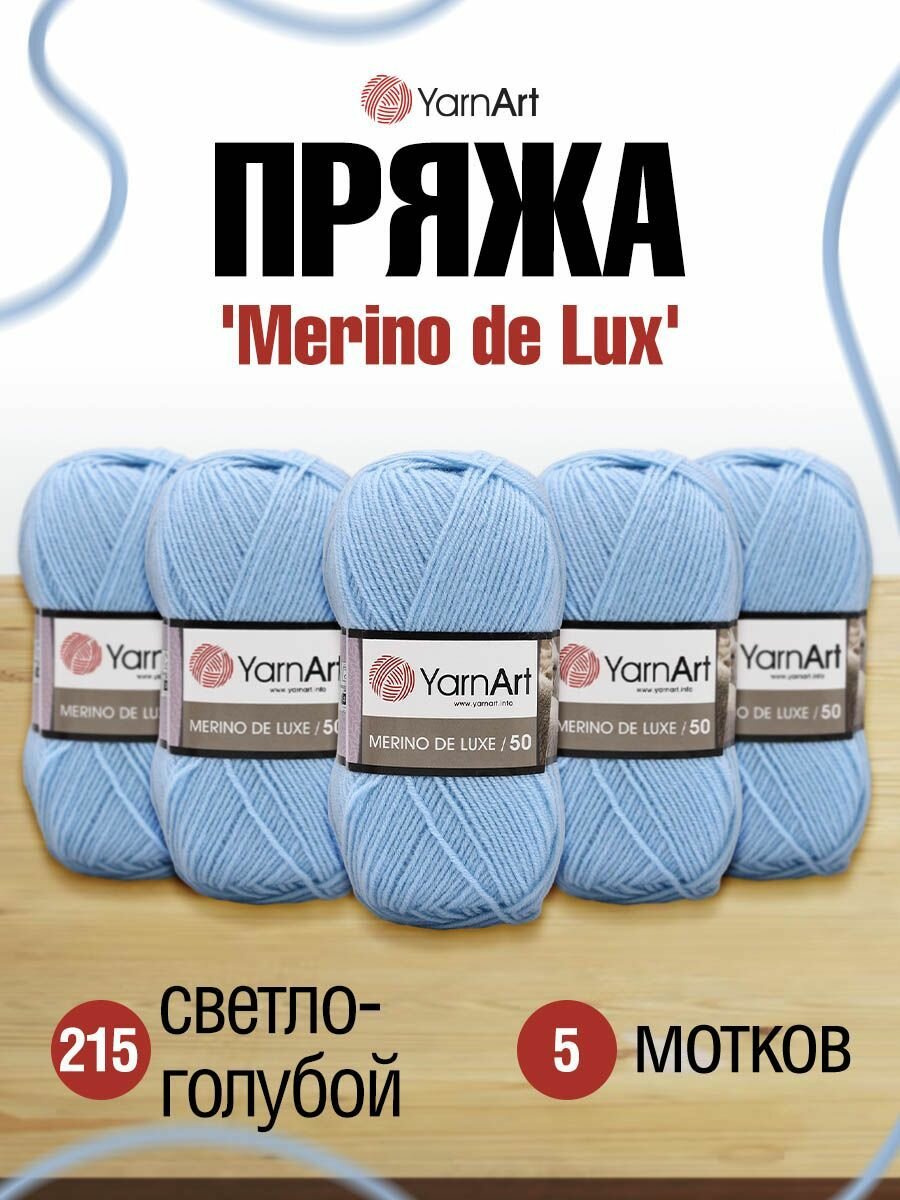 Купить Пряжа Yarnart Merino De LUXE светло-голубой (0215), 50%шерсть/50%акрил, 280м, 100г, 5шт