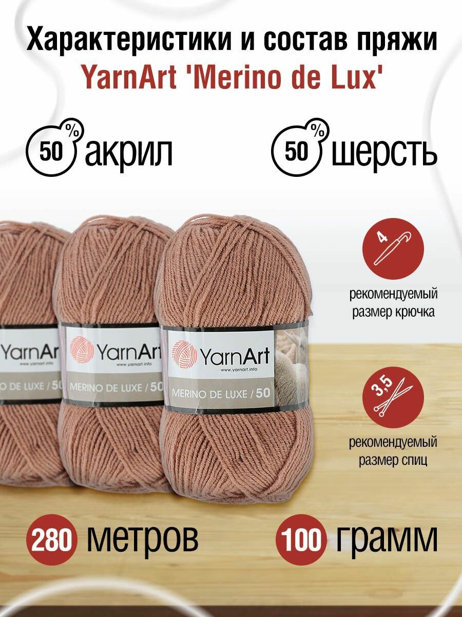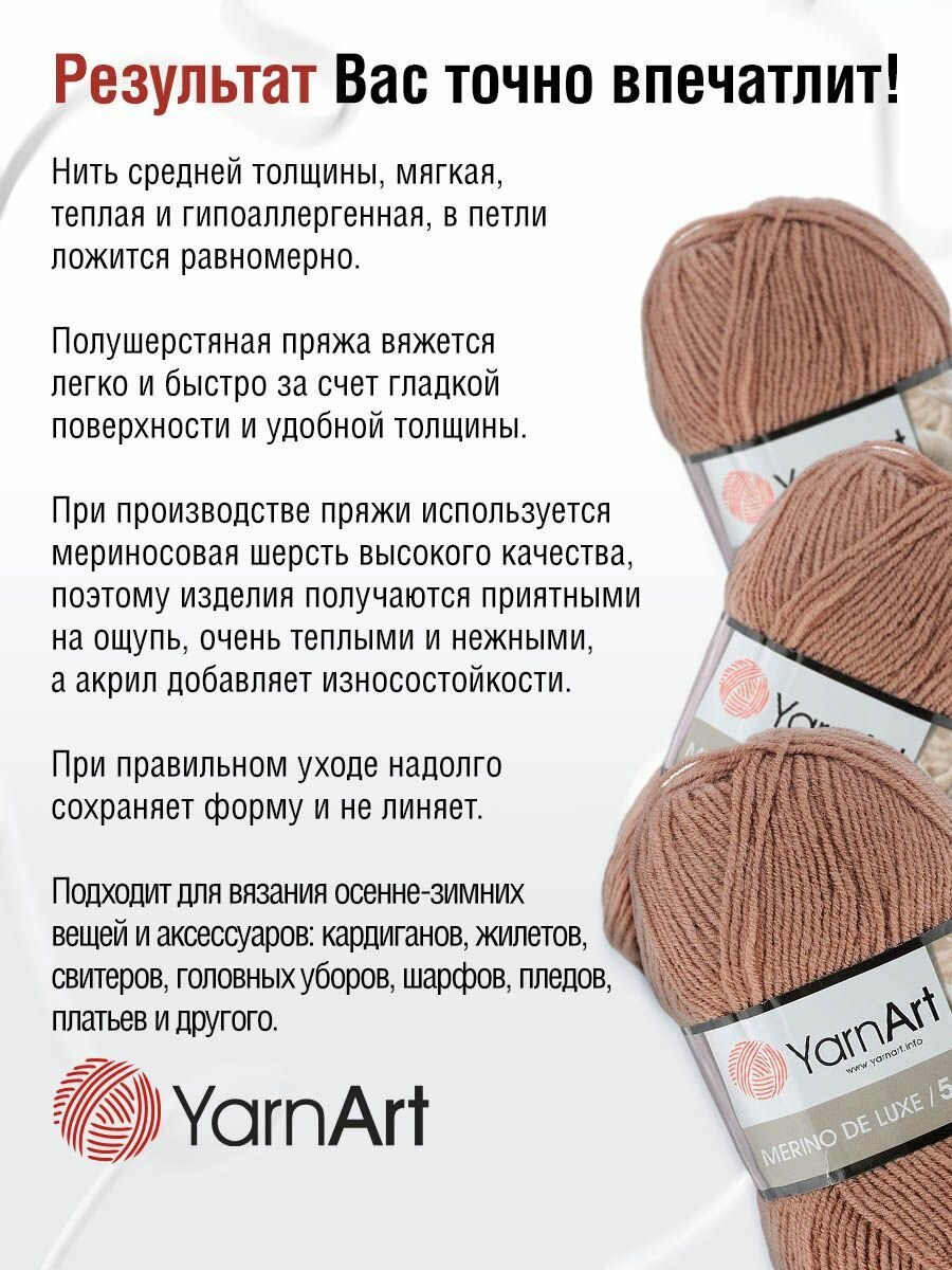 Пряжа MERINO DE LUXE 50 (YarnArt), коричневый - 3067, 50% шерсть, 50% акрил, 5 мотков, 100 г, 280 м.