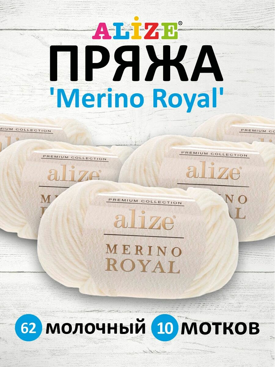 Купить Пряжа для вязания Alize Merino royal (62) молочный, 50 г, 100 м, 10 штук