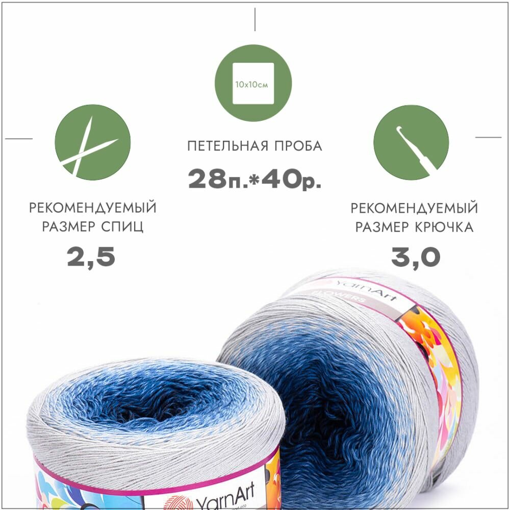 СохранитьПряжа YarnArt Flowers св.серый-голубой-т.синий (271), 55%хлопок/45%акрил, 1000м, 250г, 1шт интересное: