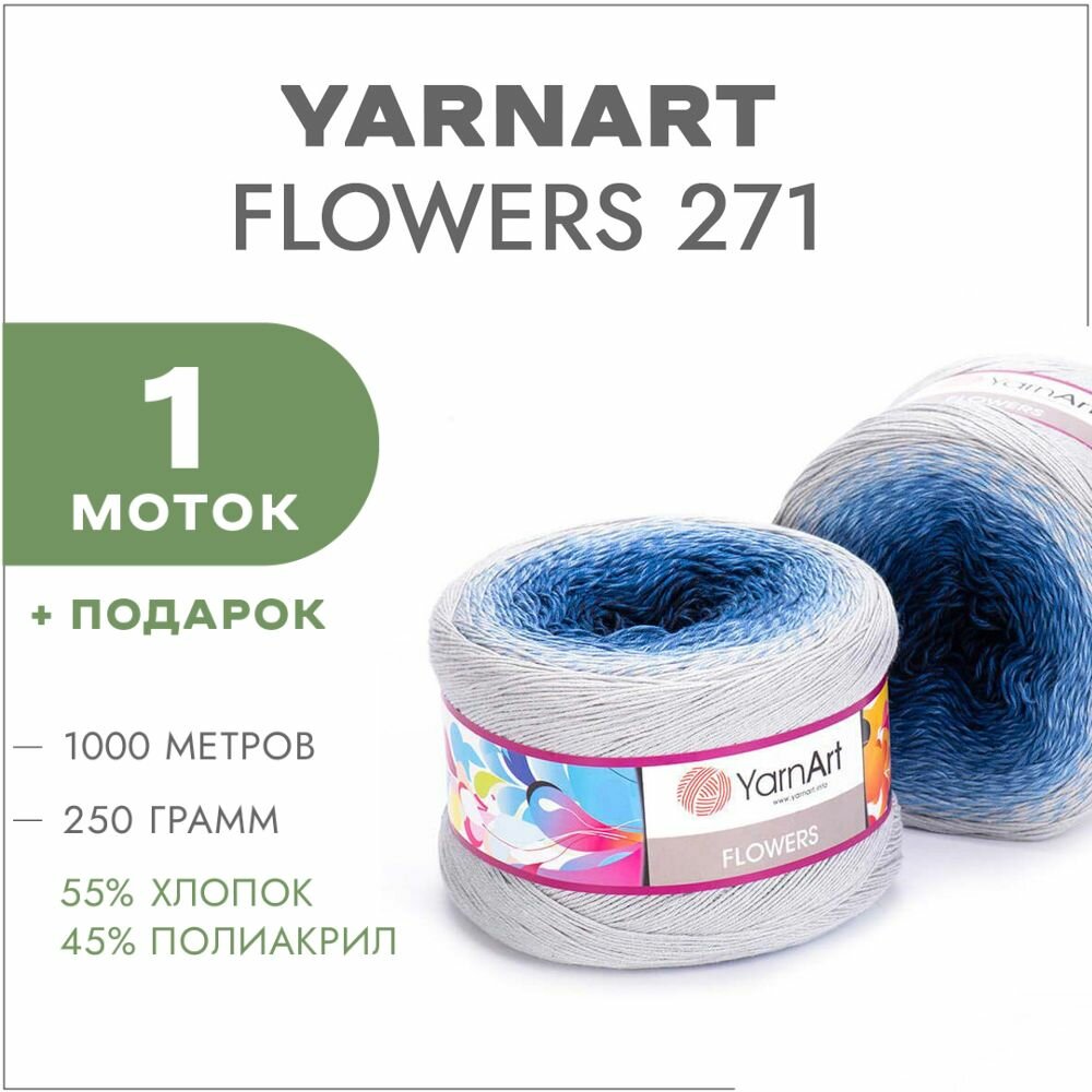 Купить Пряжа YarnArt Flowers св.серый-голубой-т.синий (271), 55%хлопок/45%акрил, 1000м, 250г, 1шт