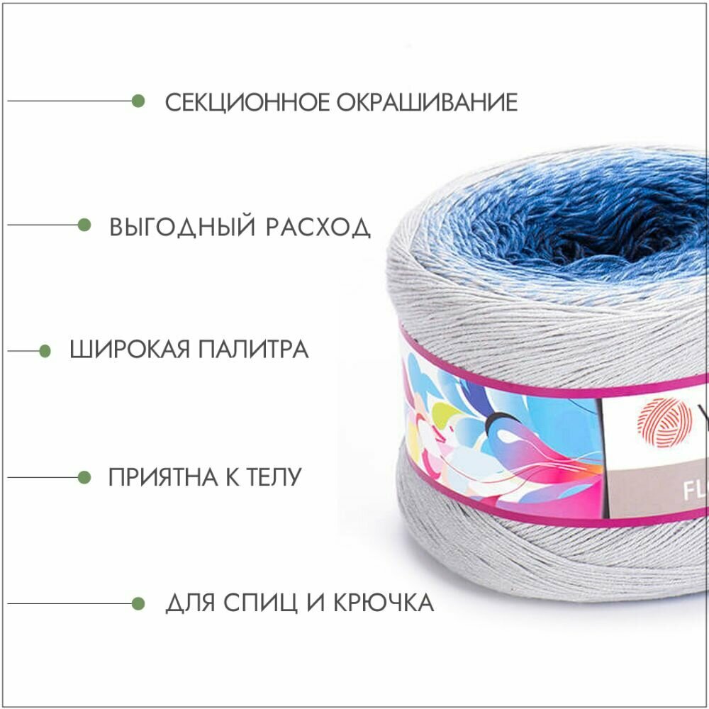 Пряжа YarnArt Flowers (ЯрнАрт Фловерс) - 1 моток, цвет: 299 (голубой/синий), 55% хлопок, 45% полиакрил 1000м/250г