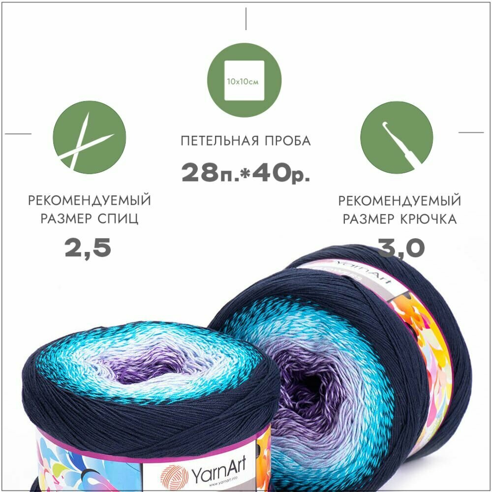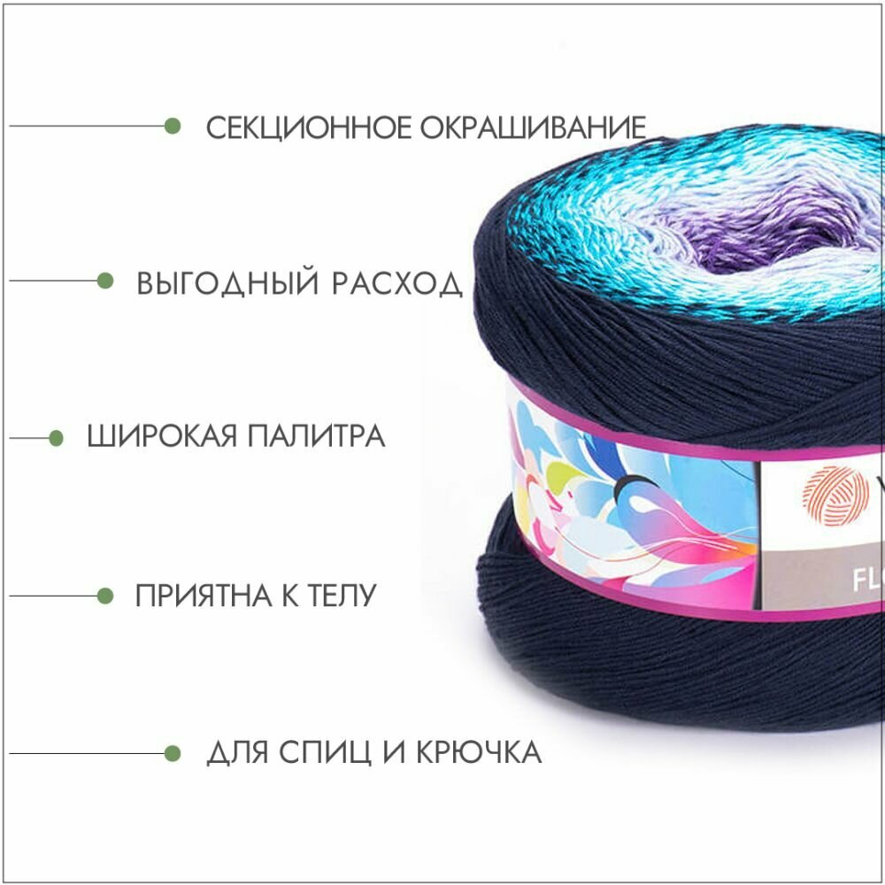 Купить Пряжа YarnArt Flowers темно синий-бирюза-сирень (254), 55%хлопок/45%акрил, 1000м, 250г, 1шт