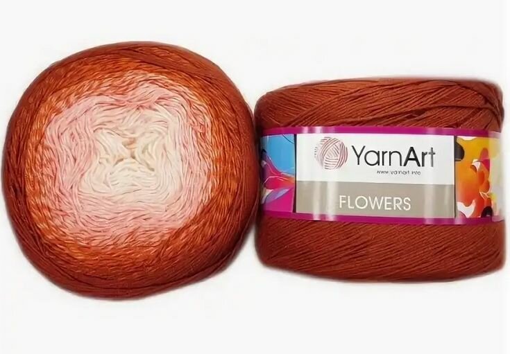 Пряжа Flowers (YarnArt), корич/рыжий - 284, 55% хлопок, 45% полиакрил, 2 мотка, 250 г, 1000 м.