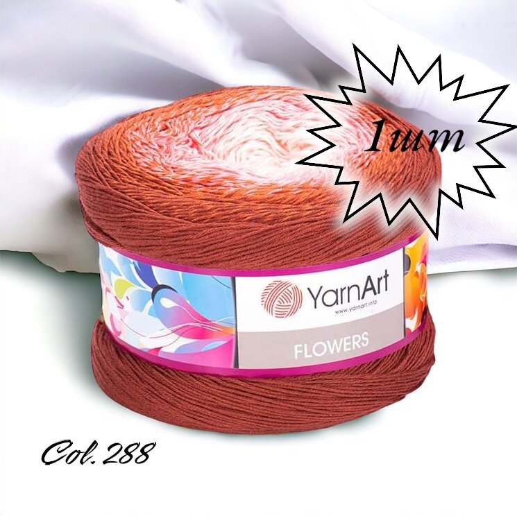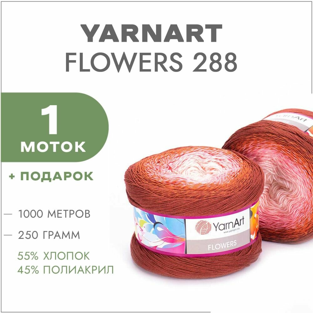 Пряжа YarnArt Flowers (ЯрнАрт Фловерс) - 1 моток цвет: 288 Коричневый / оранжевый / коралл 55% хлопок, 45% полиакрил 1000м/250г