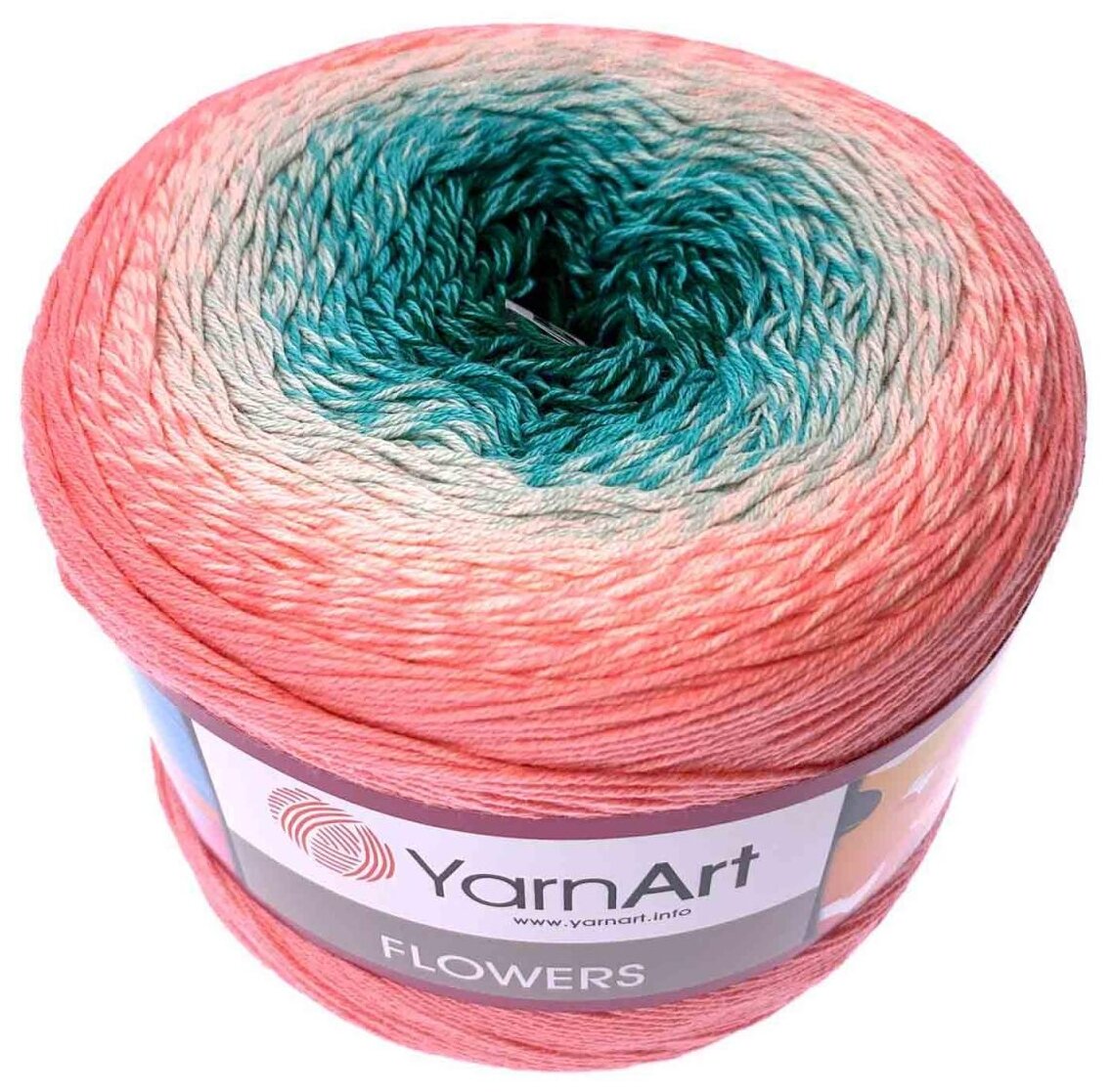 Купить Пряжа YarnArt Flowers коралл-бирюза (292), 55%хлопок/45%акрил, 1000м, 250г, 1шт