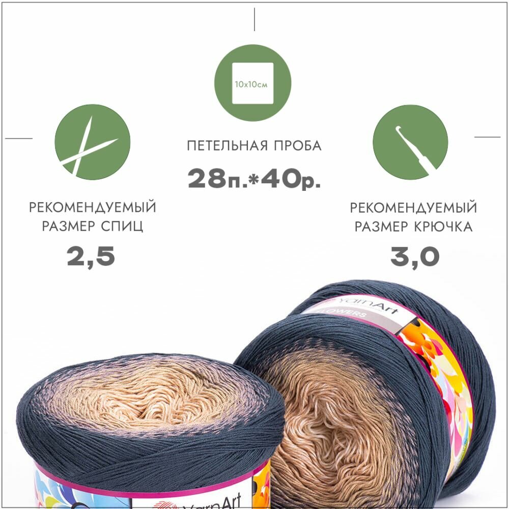 Пряжа для вязания YarnArt 'Flowers' 250г, 1000м (55% хлопок, 45% полиакрил) (264 секционный), 2 мотка