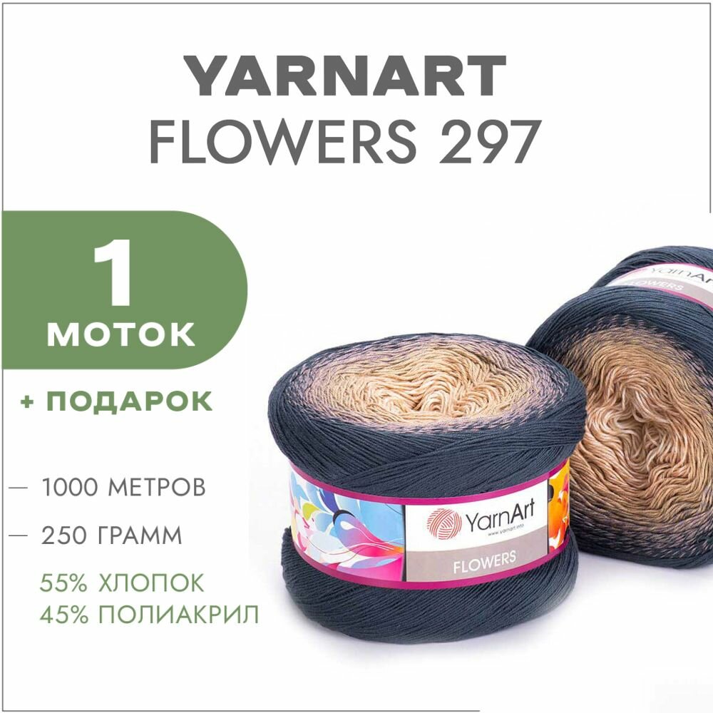 Пряжа YarnArt Flowers (ЯрнАрт Фловерс) - 1 моток цвет: 284 Коричневый / беж / песочный 55% хлопок, 45% полиакрил 1000м/250г