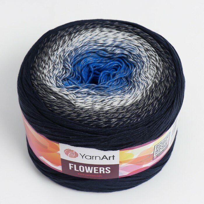 Купить Пряжа YarnArt Flowers темно-синий-серый-василек (275), 55%хлопок/45%акрил, 1000м, 250г, 1шт