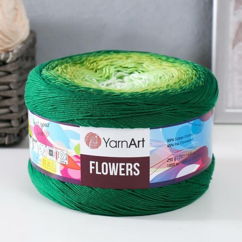 СохранитьПряжа YarnArt Flowers зеленый-салатовый-белый (283), 55%хлопок/45%акрил, 1000м, 250г, 1шт интересное:
