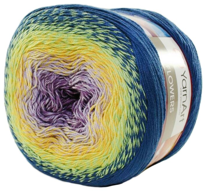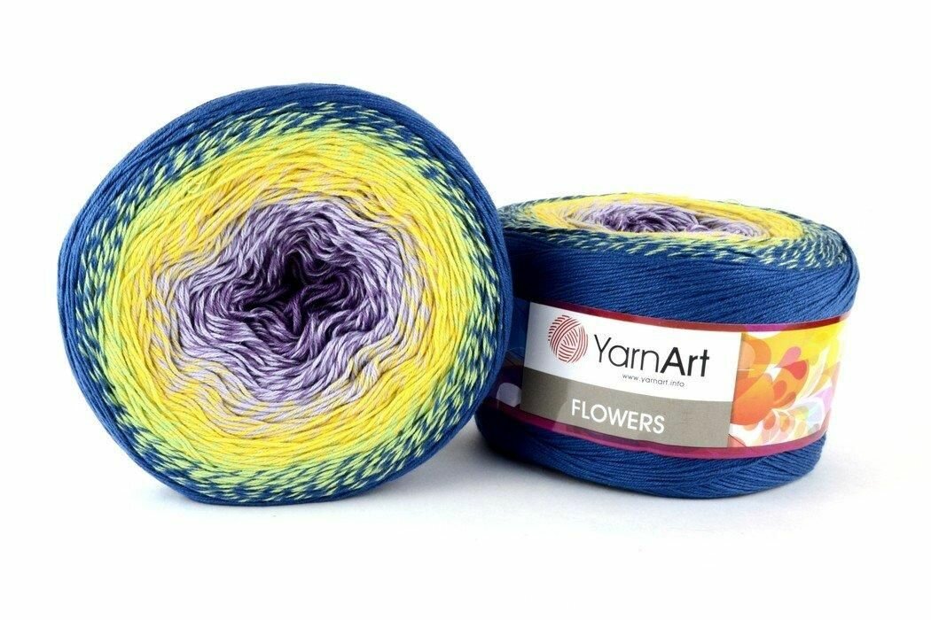 Купить Пряжа YarnArt Flowers синий желтый сиреневый (257), 55%хлопок/45%акрил, 1000м, 250г, 1шт