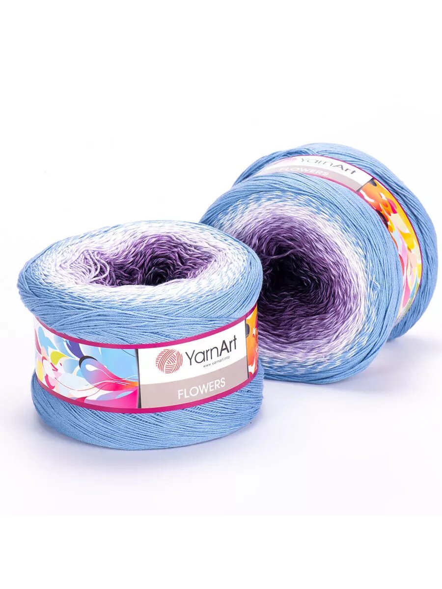 Пряжа YarnArt Flowers голубой-белый-сиреневый-фиолет (264), 55%хлопок/45%акрил, 1000м, 250г, 2шт